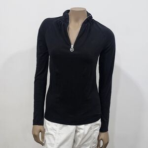 Michael kors women blouse long sleeve 1/2 zip front small black