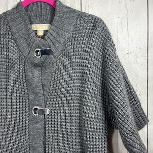 Michael kors Wool Blend Gray Sweater Cardigan Toggle Pockets Gray Short Sleeve