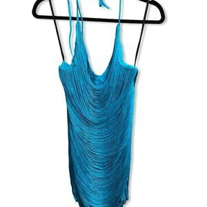 Michael Costello REVOLVE Skylar Mini Dress Turquoise Blue Teal Halter fringe XS
