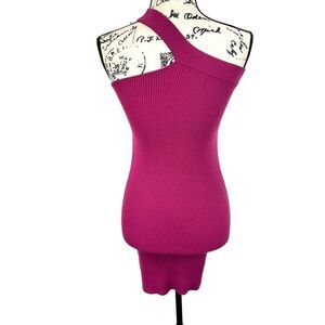 Michael Costello X Revolve Magenta One Shoulder Ribbed Body-con Mini Party Dress, XS