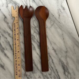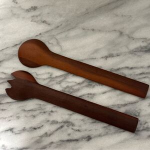 Elegant wooden salad serving utensils. Perfect for any dining setting.