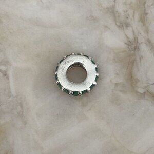 Lovely Michael Hill charm bead in sterling silver with a full circle of emerald tone stones. This bead will fit the Emma Roe charm bracelet as well as any Pandora or similar style bracelets.