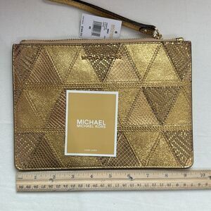 Michael Kors Adele XL Metallic Gold Leather Geometric Clutch