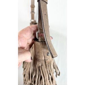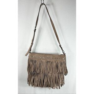 Michael Kors Billy Fringe Boho Crossbody Bag Taupe Suede Studded Western Style