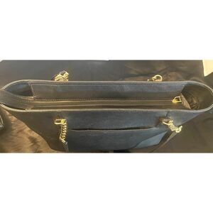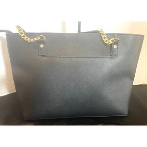 Michael Kors Black Leather w/Gold Chain Handle Large Tote/Shoulder Bag Chic black tote with striking gold chain details. Perfect for everyday elegance. Details...