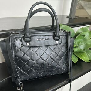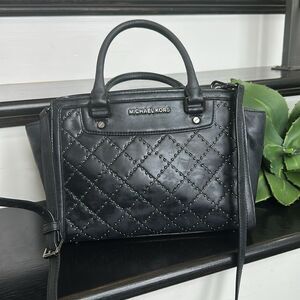 Michael Kors Black Quilted Leather Studded Satchel Crossbody Handbag
