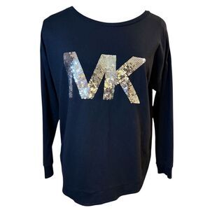 Michael Kors Black Sweatshirt Long Sleeve MK Sequin Logo Sz. L