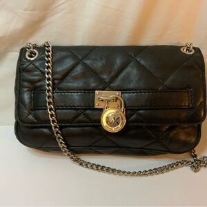 Michael Kors Black Quilted Leather Handbag with Silver Chain