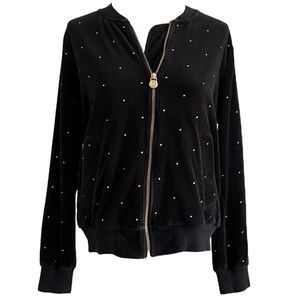 Michael Kors Black Velour Rhinestone Bomber Jacket Large Black and gold