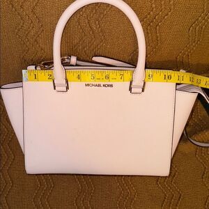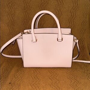 Elegant blush Michael Kors handbag. Comes with two stylish sunglasses. Multiple pockets inside purse. Dimensions shown in pics. Small blemish on inside bottom pocket as shown in pics. 2 pair of NWT shades included