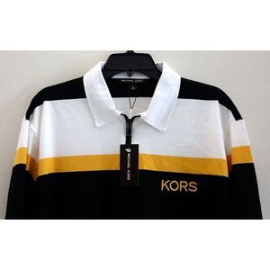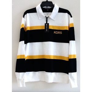 Michael Kors CS250PJ5E2 Men's Sz M Butter Multi Striped L/S Rugby Polo Shirt