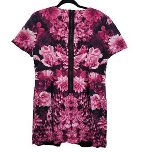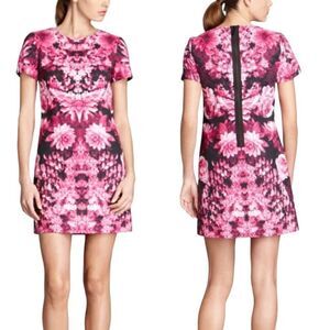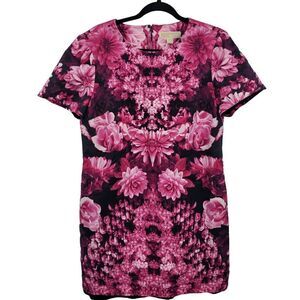 Michael Kors Dress 14 Pink Short Sleeve Kew Garden Floral Exposed Zipper Vibrant