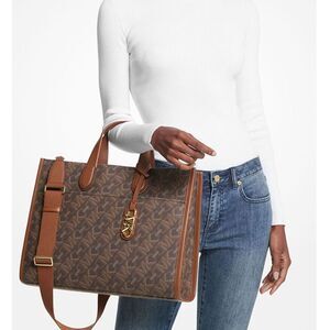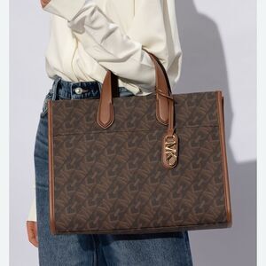 GIGI LARGE EMPIRE SIGNATURE LOGO TOTE BAG Elegant Michael Kors tote in rich brown. Features signature monogram design and sturdy handles.