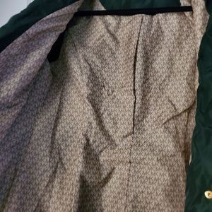Layer your chic look with the Michael Kors snap front quilted jacket and embrace the elements in style. Features tonal stitching and gold-tone hardware. Warm, low-loft polyfill in a diamond quilted design. Vertical seams lend to a structured silhouette. Stand collar. Signature hardware logo at left sleeve. Zippered hand pockets. Full snap-button front placket with concealed zipper closure. Straight hemline falls at hip, 27" length. approx 19" pit to pit, 21" approx sleeve length but can be worn rolled up a little. The sleeve lining is solid emerald green.