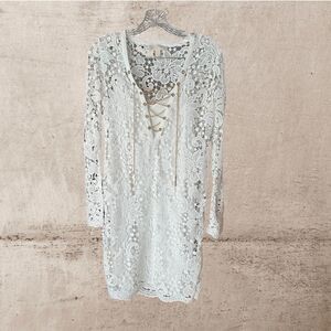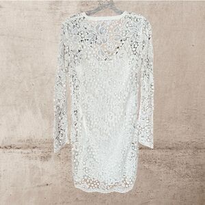 Michael Kors Gorgeous White Crochet - Floral Lace Overlay Dress Size Small
