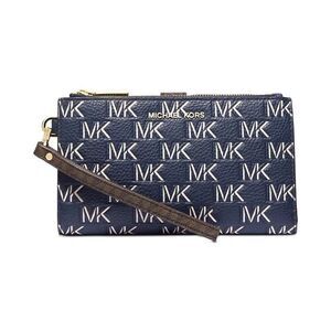 Michael Kors Jet Set Logo Wristlet Women's Navy Brown Double Zip Wallet ERK962.