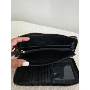 Michael Kors Jet Set Womens Black Pebbled Leather Solid Formal Zip Around Wallet