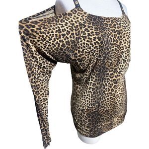 Michael Kors Long Sleeve Leopard Print Cold Shoulder Knit Top Size Small