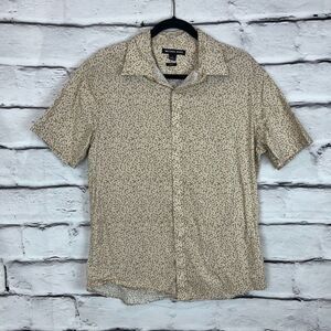 Michael Kors Men's Beige Graphic Print Short Sleeve Button-Up Shirt L