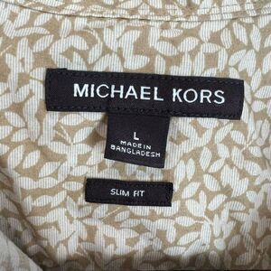 Keywords: Michael Kors, men's shirt, button-up, beige, graphic print, short sleeve, slim fit, casual wear, office wear, machine washable, pre-owned.