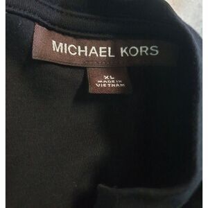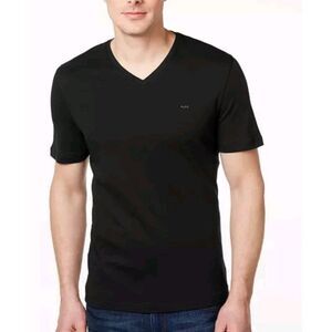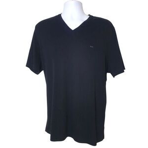 Michael Kors tee, black V-neck shirt, men's size XL, cotton T-shirt, designer casual wear, short sleeve shirt, versatile black tee, everyday wear shirt, minimalist logo shirt, breathable fabric top, comfortable men's tee, stylish men's apparel, premium quality T-shirt