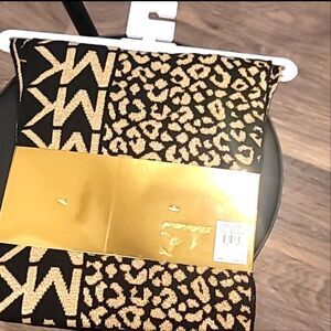 Michael Kors Metallic Leopord Logo Scarf & Beanie Hat Set