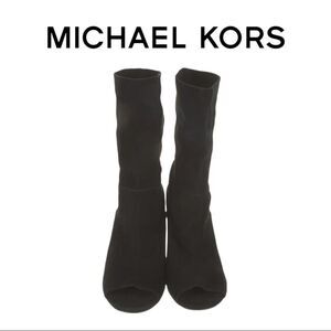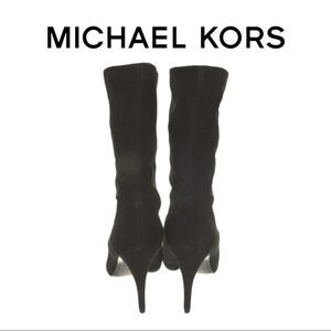 Michael Kors Mid Calf Black Suede Peep Toe Heeled Boots 7.5
