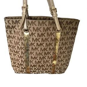 Perfect for everyday use, this tote is spacious enough to hold all your essentials. It comes with a sturdy handle for easy carrying and is suitable for any occasion. Whether you're heading to work or out for a casual day, this Michael Kors Monogram Sequin Tote is the perfect choice for fashion-conscious women.