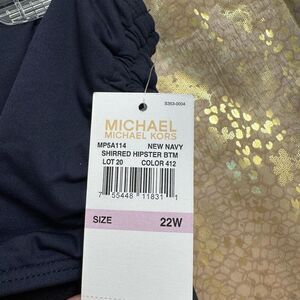 Michael Kors Navy Blue Shirred High Waist Plus Size Hipster Swim Bottom 22W