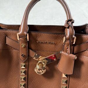 Michael Kors Nouveau Hamilton Small Studded Leather Satchel Purse in pre owned condition. Please note, the key was cut off and is currently inside. Interior needs a cleaning. Measures about 10” across & 8 3/4” tall. Authentic.
