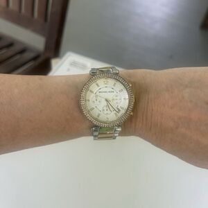 Michael Kors Parker MK5626 Wrist Watch Two Tone Gold Silver. Stainless steel. Comes in original box with manual and extra links. Excellent used condition - no flaws detected. The watch has a fresh battery and is currently working, however, we cannot guarantee that it will be working when you receive it.