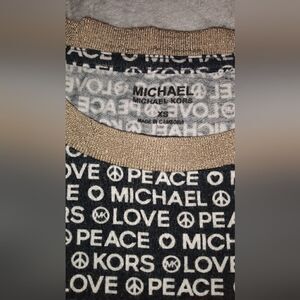 Michael Kors Peace & Love Logo T Shirt Great Condition size XS) measurements) length 21in) armpit to armpit 15.5in) sleeves 5.5in)