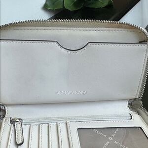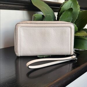 Michael Kors Pebbled Leather Wristlet Wallet Clutch, Zip Around, White