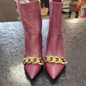 Michael Kors Pink and Gold Heeled Boots with Chain Detail