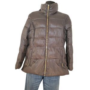 Michael Kors Puffer Coat Women Sz M Winter Nylon Full Zip Outerwear Brown School