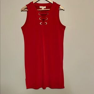 Michael Kors Red Cocktail Sheath Dress Sleeveless Crew Neck