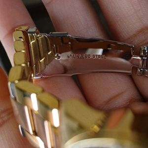 Gold-tone and rose gold-tone stainless steel blends beautifully in this radiant Ritz watch created by Michael Kors.