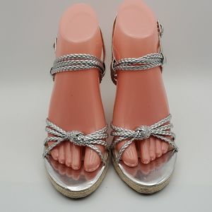 Michael Kors Silver Espadrille Wedge Sandals. SIZE 7M. S854