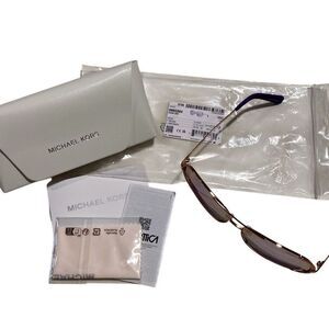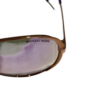 Add stylish flair to any outfit with these Michael Kors Chelsea sunglasses, model MK 5004. Featuring a sleek rose gold metal frame and bold purple mirror lenses, these aviator-style shades offer a chic, modern look. The lightweight design ensures all-day comfort, while the subtle Michael Kors branding adds a touch of luxury. Comes with the original white Michael Kors hard case for safe storage. Perfect for upgrading your eyewear collection or gifting to a fashion-forward friend.