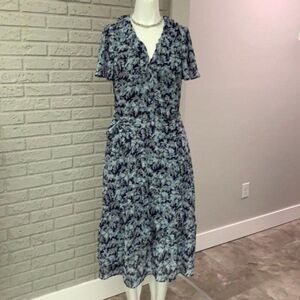 Michael Kors Women Blue Floral Flutter Sleeve Wrap Dress Size S