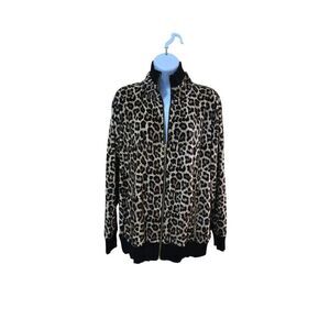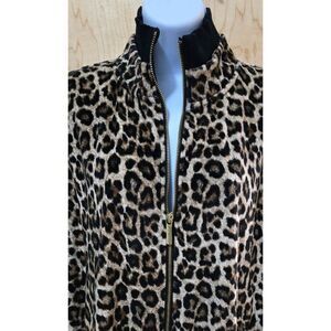 Michael Kors Womens Leopard Print Zip-Up Jacket Long Sleeve mob wife animal soft