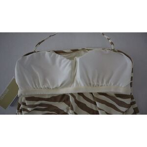 Michael Kors Women's Sz S Khaki Zebra Print Tie Front Tankini Swimsuit Top