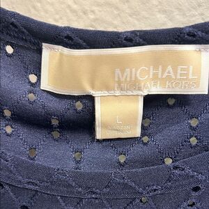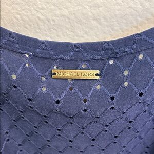 Chic navy eyelet fabric featuring cold shoulder design with peplum and ruffle details. Excellent condition.