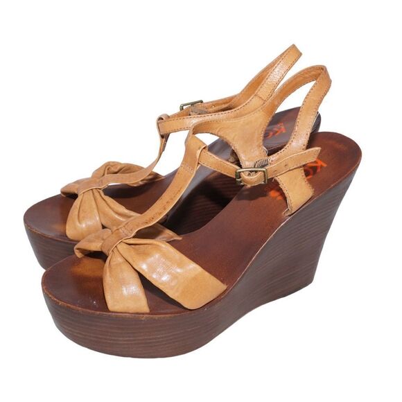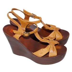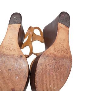 Michael Kors Wooden Tan Leather Platform Wedges, Size 8.5