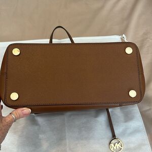 Michael Kors brown leather handbag lots of pockets roomy and adjustable handles