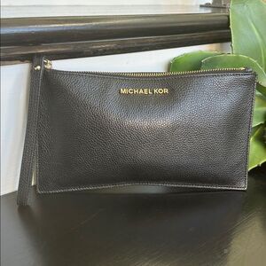 Michael Kors genuine leather, like new, soft pebbled wristlet clutch, black zip pouch