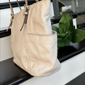 Michael Kors genuine leather pebble tote shoulder handbag, soft neutral, roomy and elegant