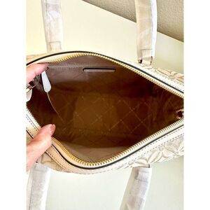 RADIANT ELEGANCE: Michael Kors Pale Gold Multi Logo Jacquard Shoulder Bag