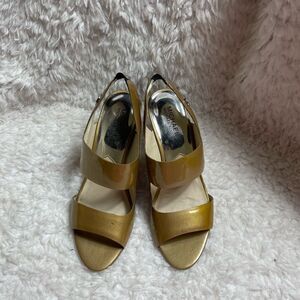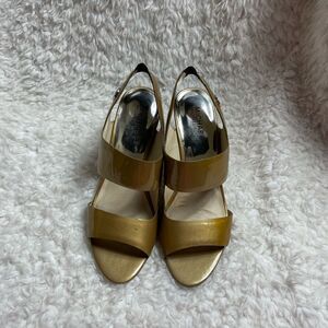 Michael Kors patent leather goldfish olive green sling back straps sandals SZ9M