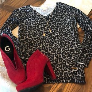Lightweight medium leopard print black and white Michael Kors sweater. In good condition. It is great with red pants, blazer, casual or dressy events!